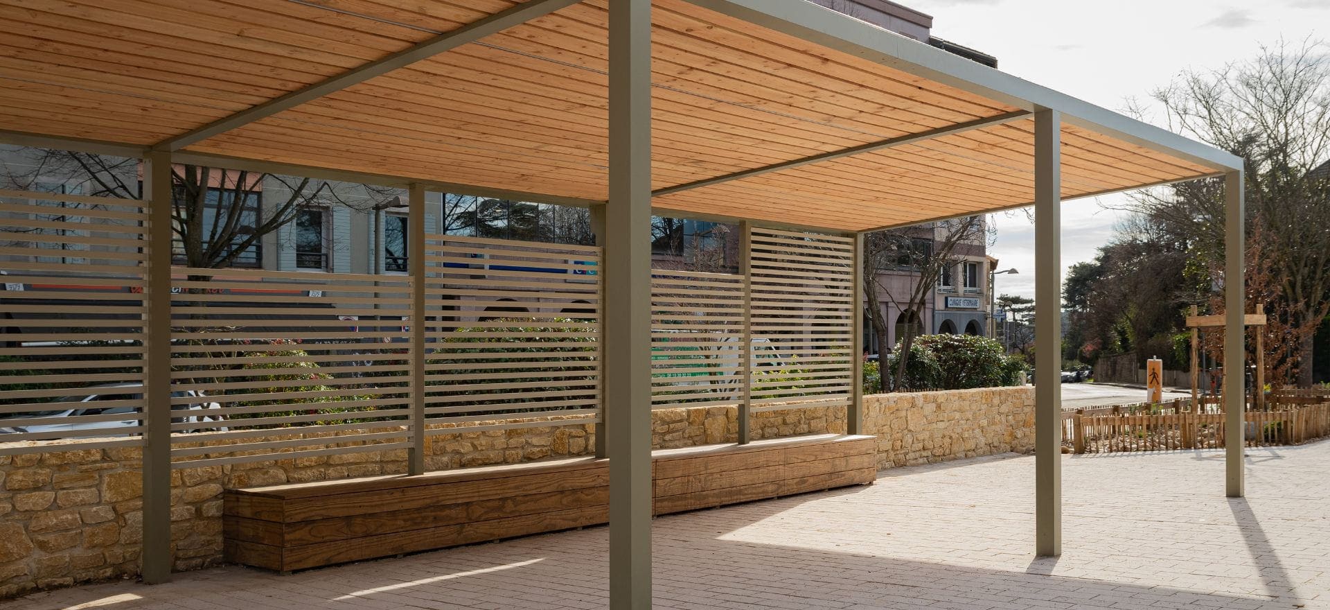Pergolas, ombrières, ombrelles ou structures végétalisées : nos solutions d’ombrage métamorphosent vos espaces extérieurs en véritables îlots de bien-être (espace de pause, zone fumeur, espace lunch). Nos structures accompagnent vos aménagements urbains ou espaces de pause avec élégance.