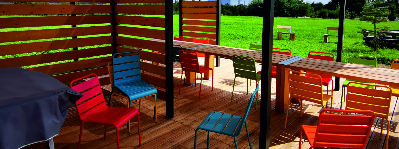 Nos tables « traditionnelles » ou tables de bar, nos ensembles jardinières et tables offrant une touche de fraicheur pendant la pause déjeuner, sont de fabrication françaises et conçues pour résister aux intempéries. Découvrez également nos abri-tables permettant de déjeuner à l’abri du soleil et des regards, mais aussi nos pergolas et structures d’ombrages qui offrent de nombreuses combinaisons à partir de modules standards ou selon vos dimensions.