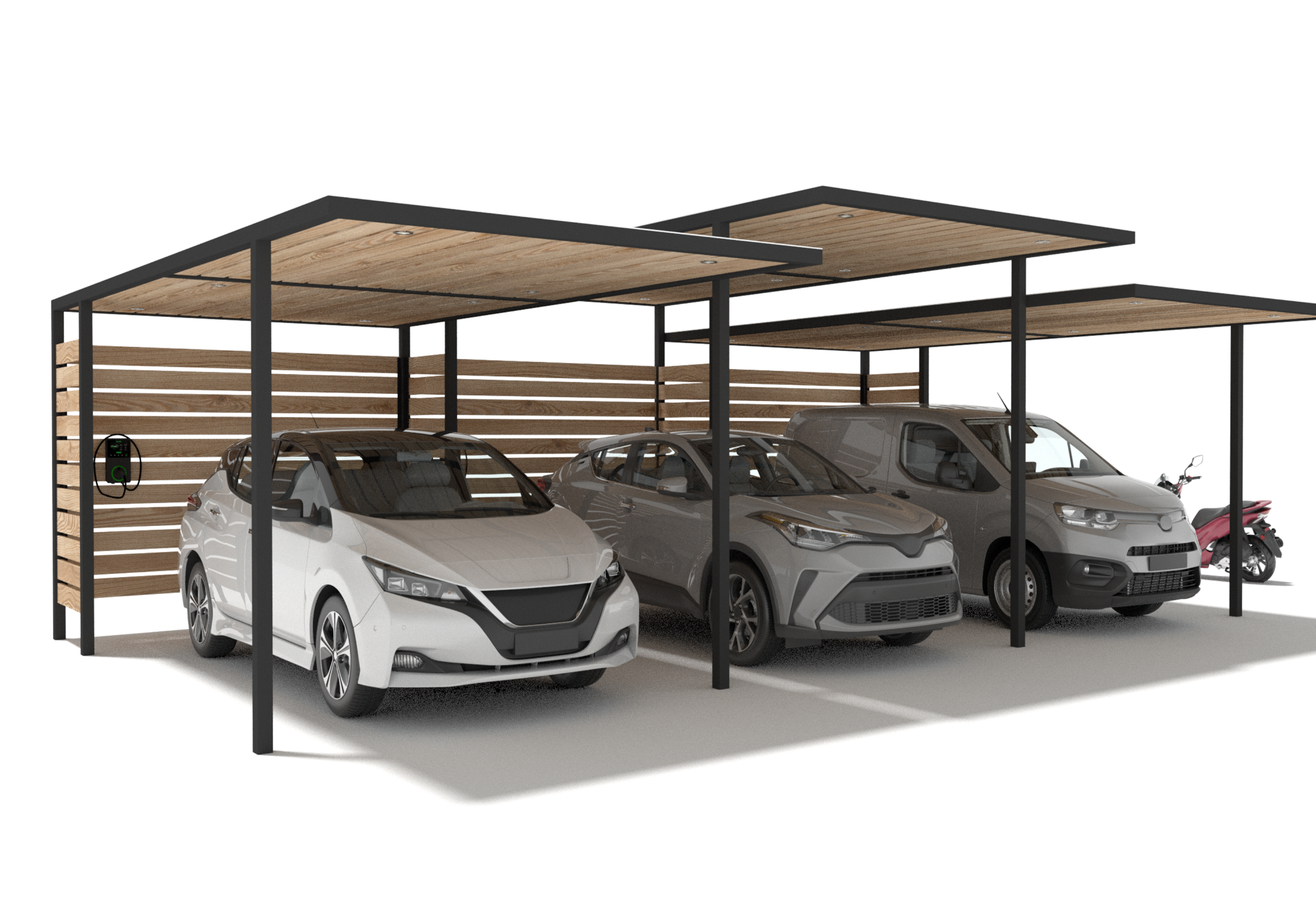 Carport au design moderne avec structure en aluminium thermolaqué. Fabriqué en France et 100% recyclable.